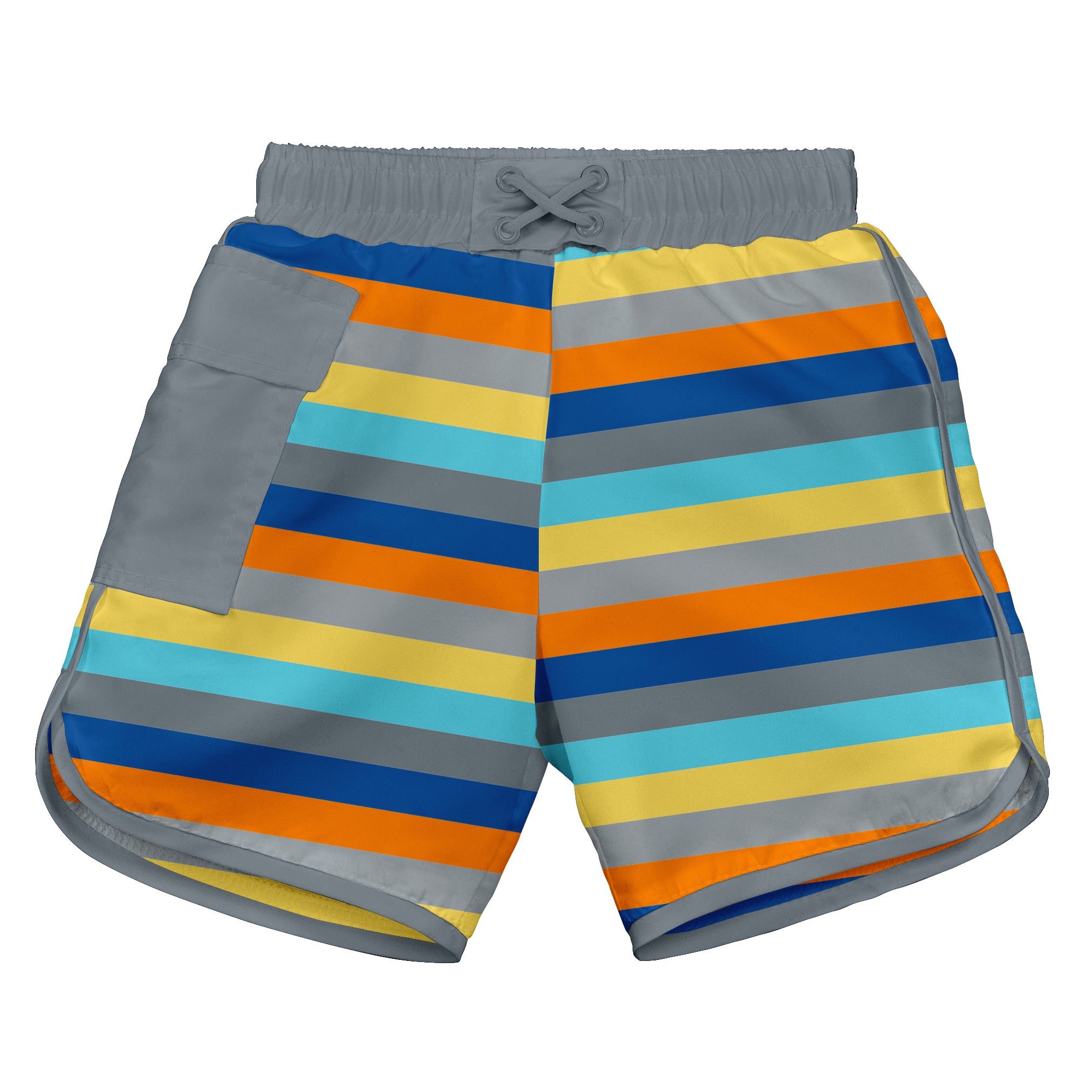 Mix & Match Pocket Board Shorts w/Built-in Reusable Absorbent Swim Diaper-Gray Multistripe