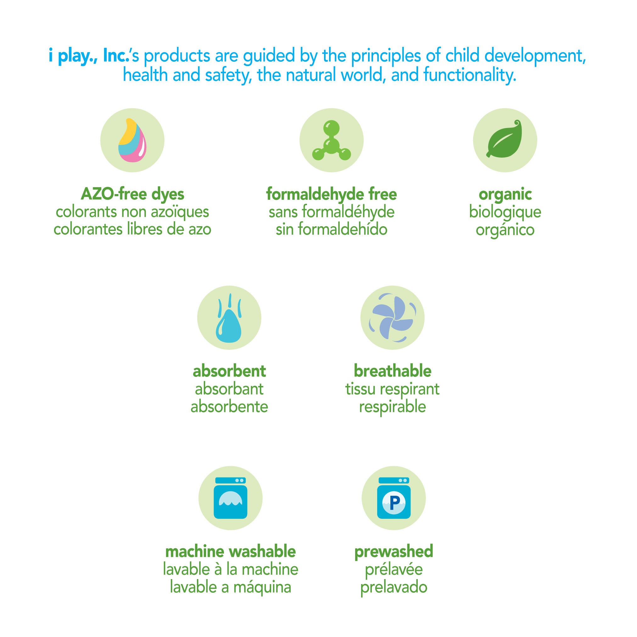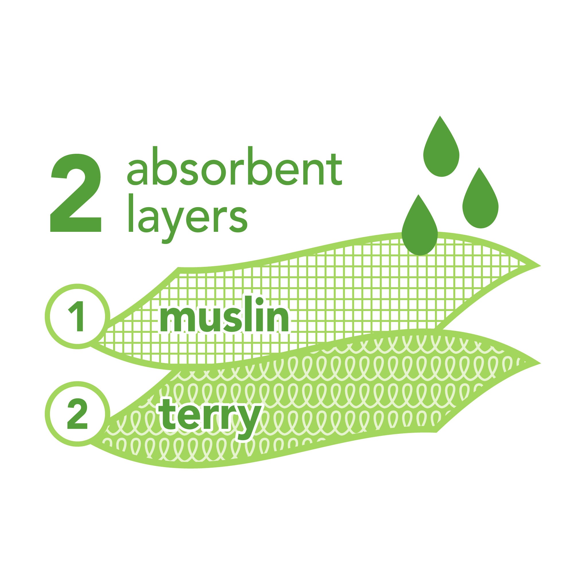 Muslin Washcloths gently clean baby or toddler’s skin with two super soft layers of organic cotton muslin and terry. They are generously sized for all ages, and the hanging loop helps them dry quickly. Organic cotton is formaldehyde-free with azo-free dyes, so only the safest materials touch baby’s delicate skin.